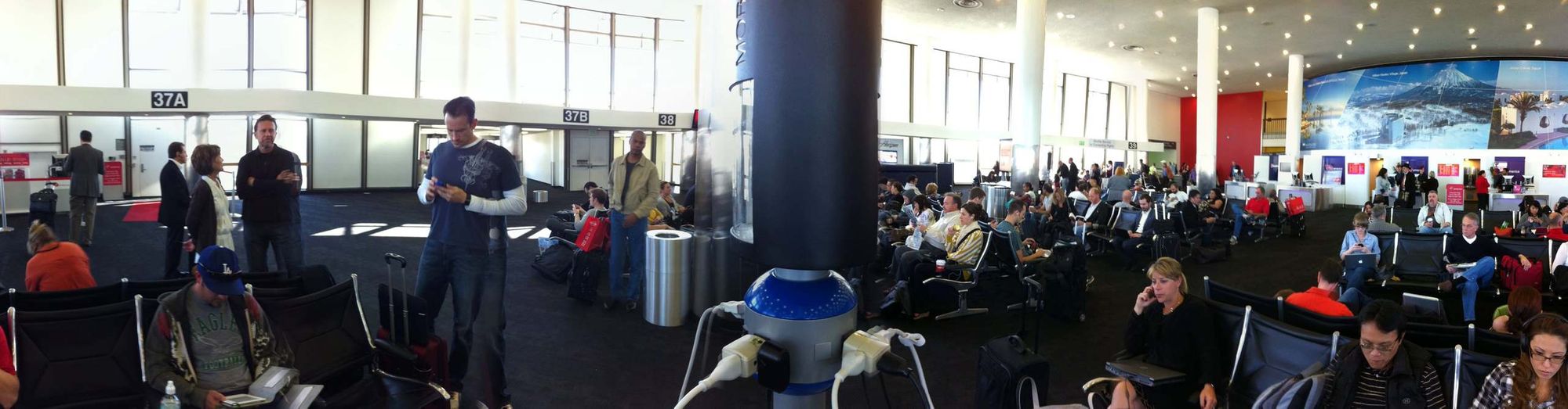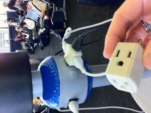 A reminder of how awesome the lowly 3 way power plug adapter my wife and I carry in our bags can be. We were at LAX today and all the charging ports were full. We each whipped one out and had a few new friends in no time. You can find these for about $1 at any hardware store. Makes me wonder why companies don't give branded versions out at CES - maybe we'll do that this year. Who wants one?!