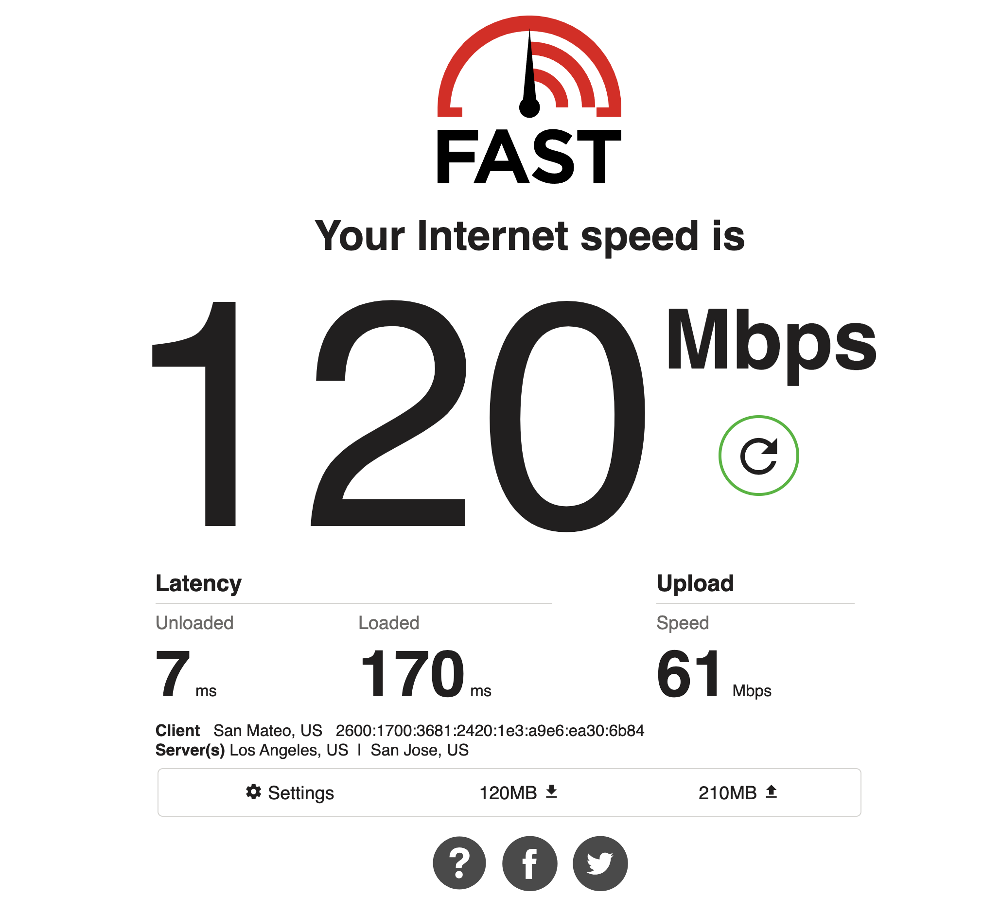 Total cost is under $600. With this setup (also bought a Netgear POE powered switch for the casita to power the Ruckus) I'm able to get low latency (under 7ms), fast internet. Here's a speed test for reference:
