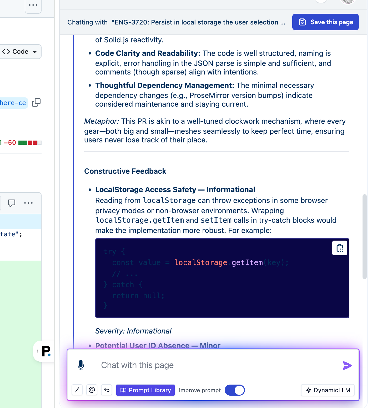 - I review the answer and paste it into the code comment / approval dialogue box in Github.