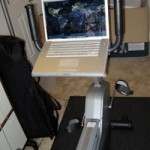 Because the NordicTrack bike couldn't accommodate the original laptop stand, I had to fabricate my own laptop stand, which I made out of aluminum. You can watch a YouTube video of the bike + stand below.